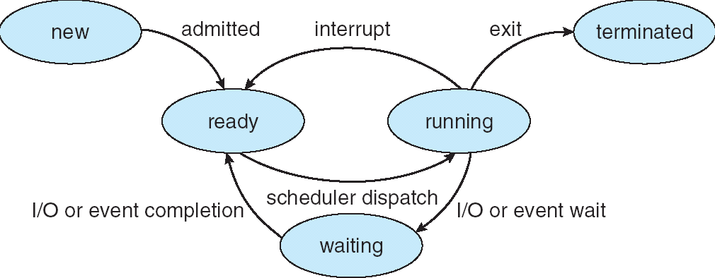 - 실행(running) : 프로세스가 프로세서를 차지하여 명령어들이 실행되고 있다.