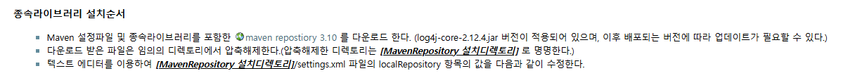 여기에서 Maven 관련 종속 라이브러리를 다운받아 메이븐 설정을 해줘야 한다.